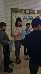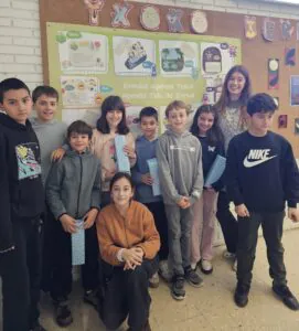 Ingurumen Batzordeko kideak ingurumenari eta kontsumo arduratsuari buruzko galderaz betetako Kahoot dibertigarria prestatu dute eta 3., 4., 5. eta 6. mailako geletatik pasatu dira.